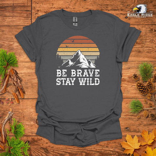 Be Brave Stay Wild • Hiking T-shirt • Retro Mountain Sunset Graphic